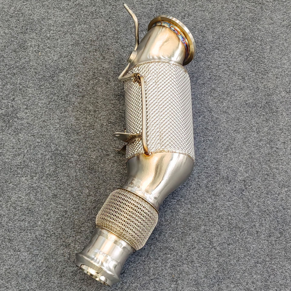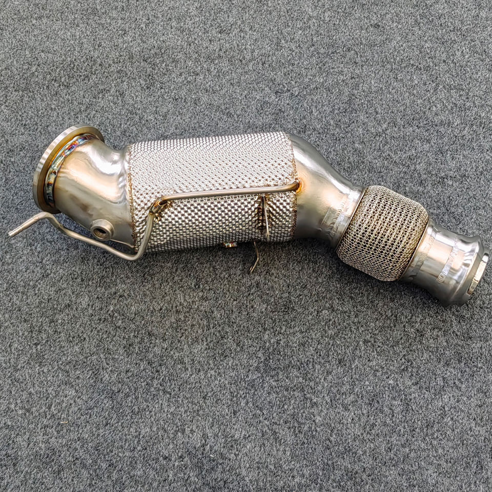 Downpipe catalizzato OEM MM Factory con scudo termico a flusso libero per BMW B48/B46 120i, 220i, 230i, 320i, 330e, 330i, 420i, 430i, 630i, 730i