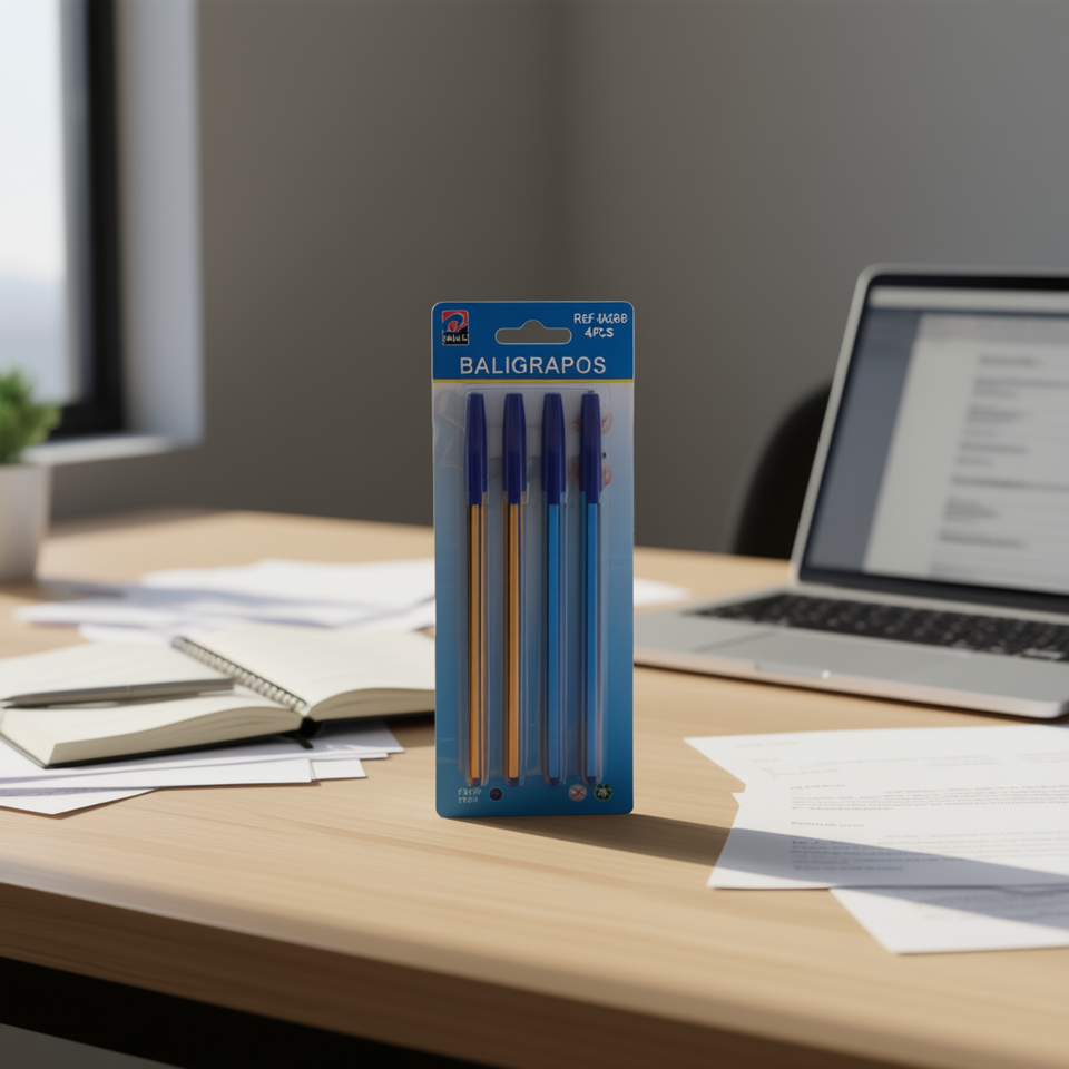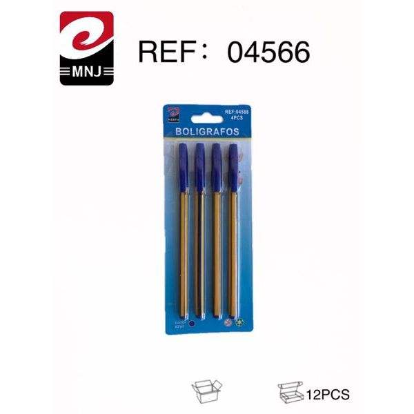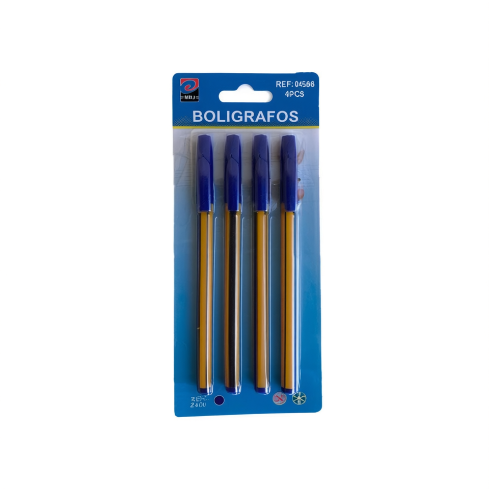 MNJ Ballpoint Pens 4Pcs Blue Ink Ref 04566 Pack