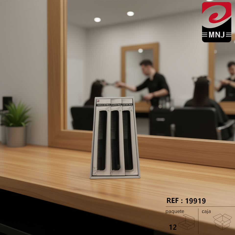 Set di pettini per capelli MNJ, 3 pezzi, colore nero, strumento professionale per lo styling