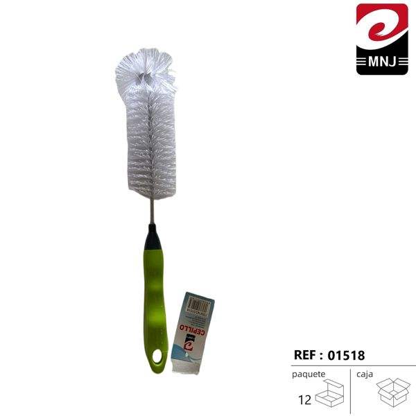 Spazzola da cucina MNJ 01518 con manico verde e setole bianche per la pulizia di tubi e condotti