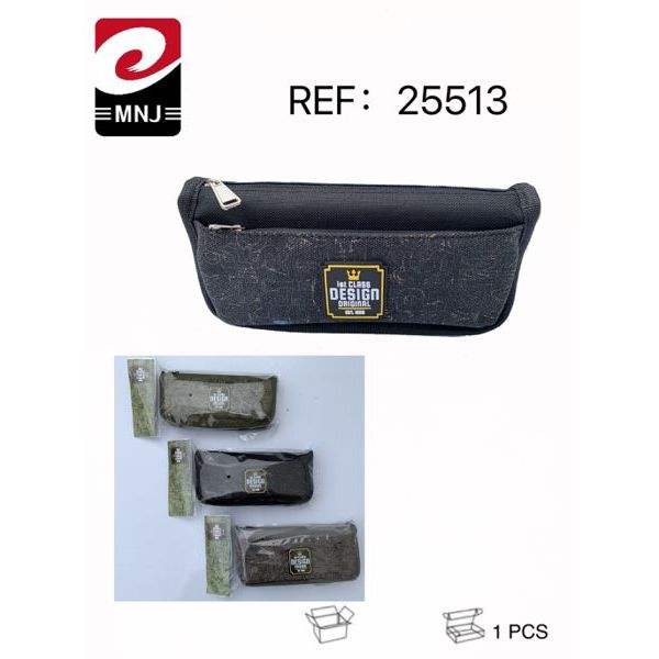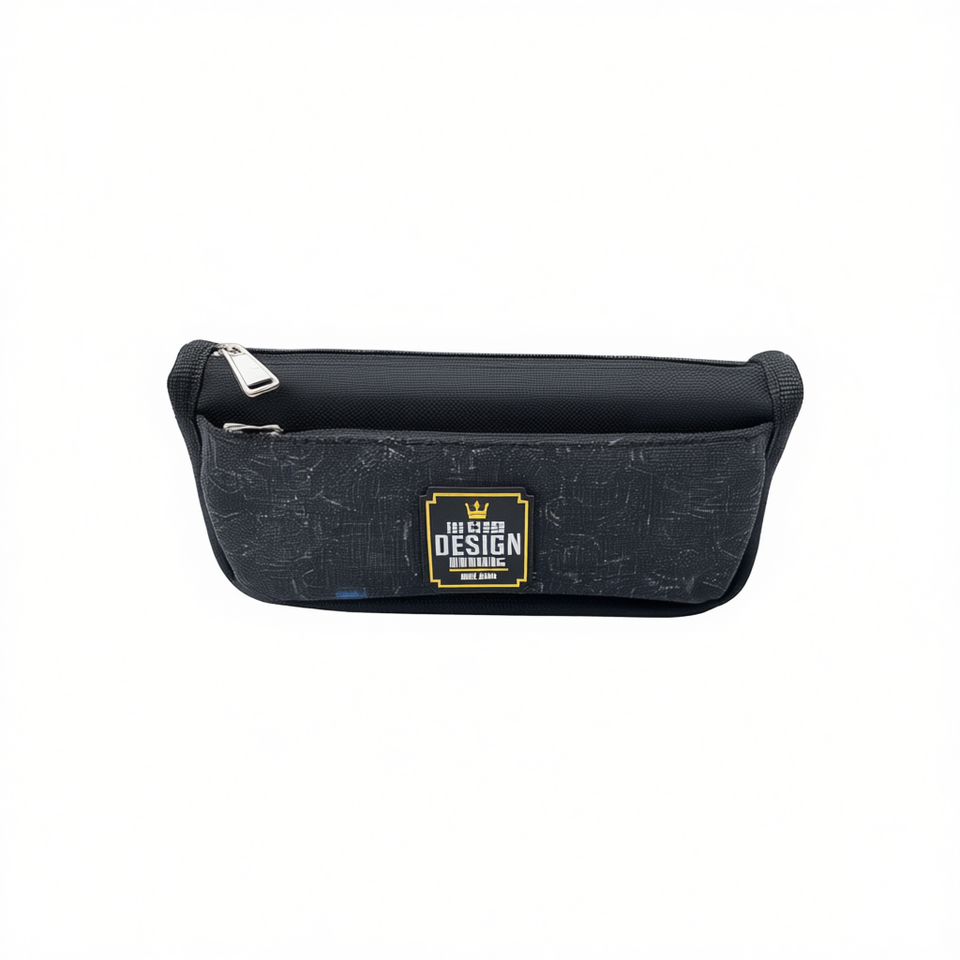 MNJ Pencil Case Black Design 25513 Zippered Storage Bag for School Office Use