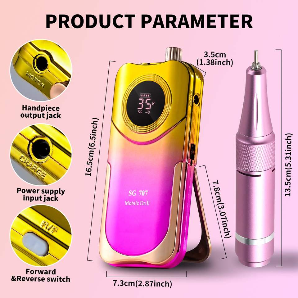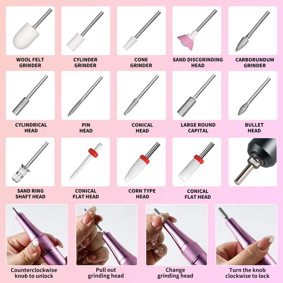 MOCOWIND Trapano Elettrico Professionale per Unghie, 35000 RPM, Portatile e Ricaricabile, per Acrilico e Gel