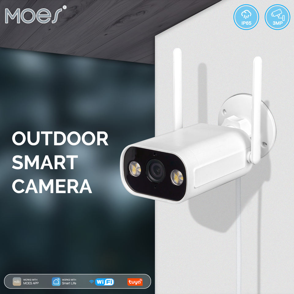 MOES WiFi Smart Outdoor Camera HD 3MP rilevamento del movimento del colore visione notturna bidirezionale Audio Monitor di sicurezza