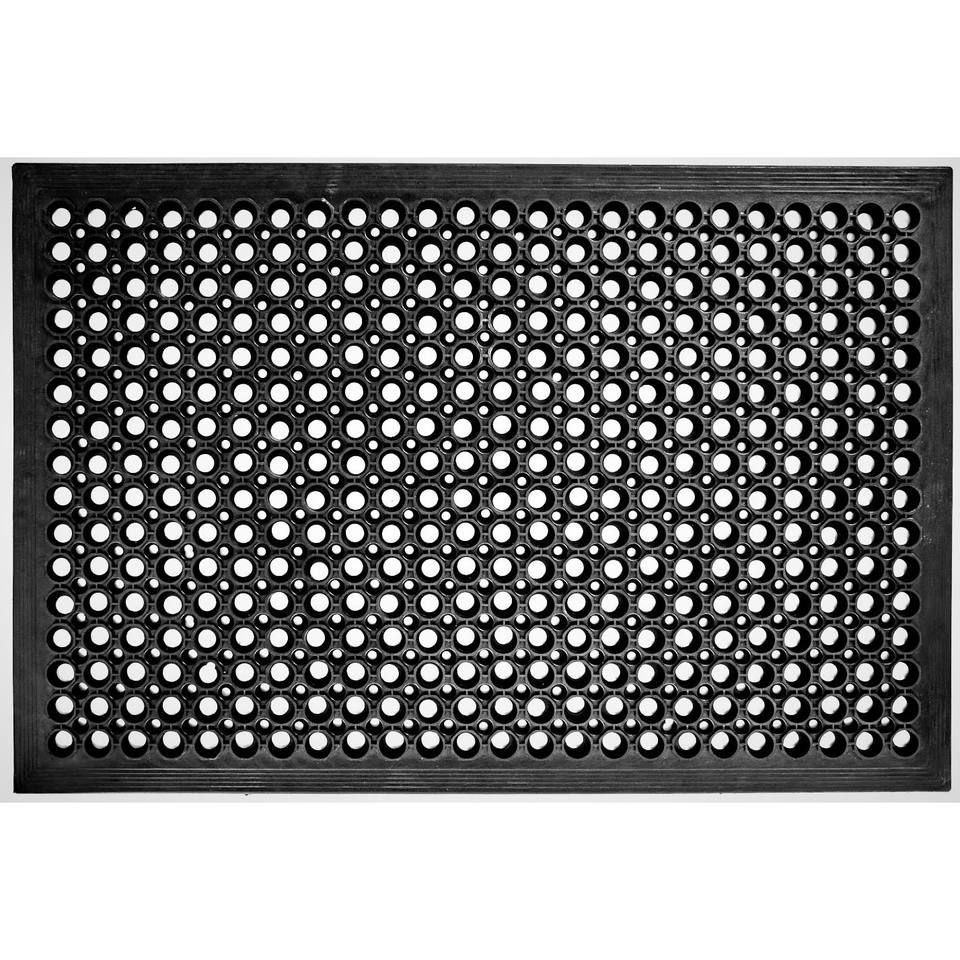 MONA Reversible Black Entrance Doormat 90x150x1.2 cm Outdoor Jet-Line Ring Pattern for Office and Kitchen Modern Style