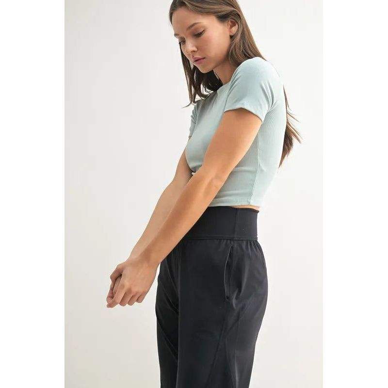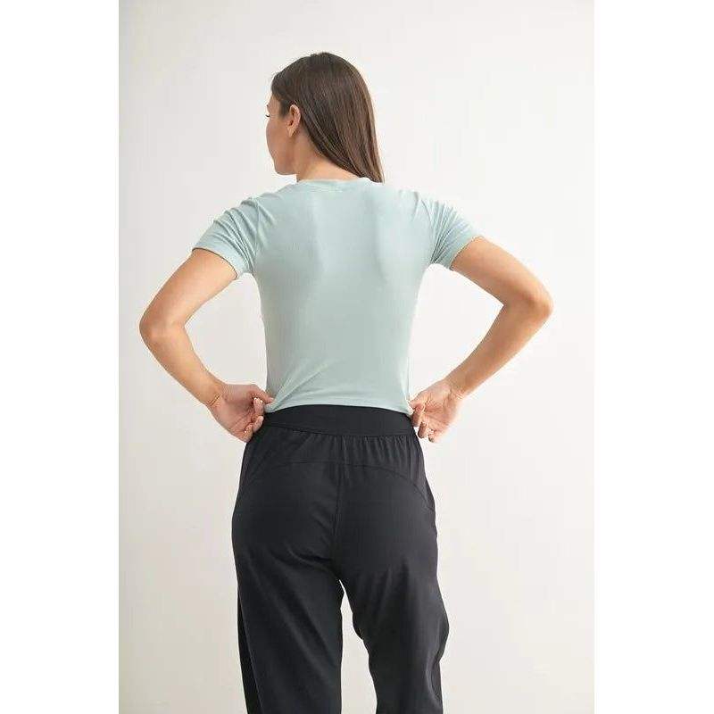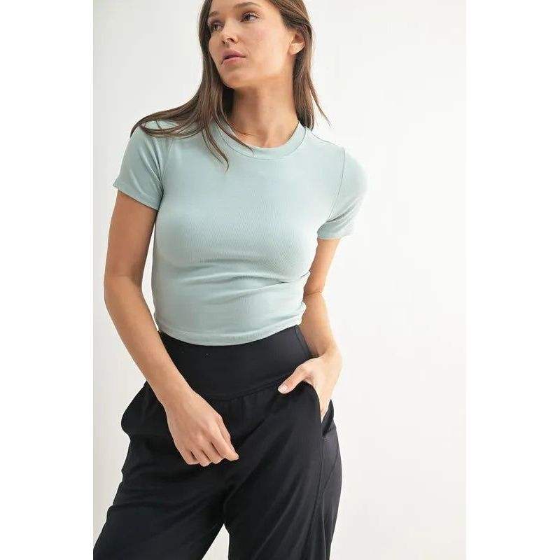 MONO B T-shirt essenziale da donna a maniche corte in micro-rib per il tempo libero e lo sport