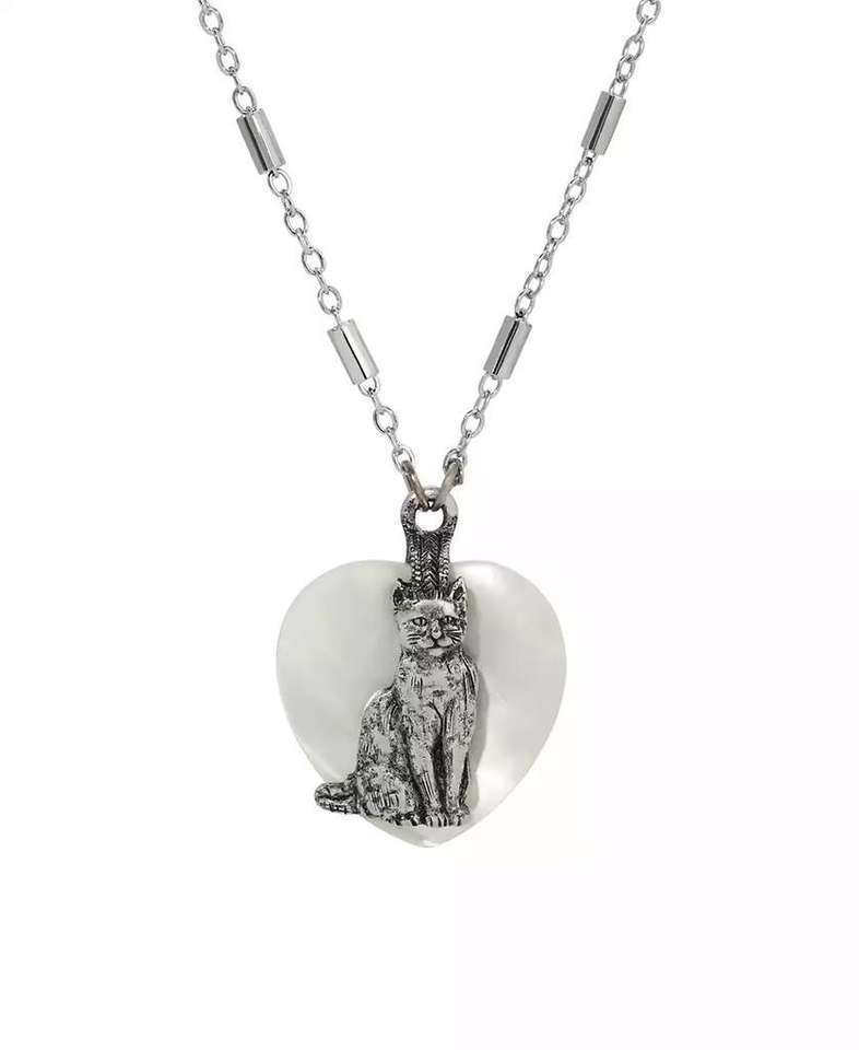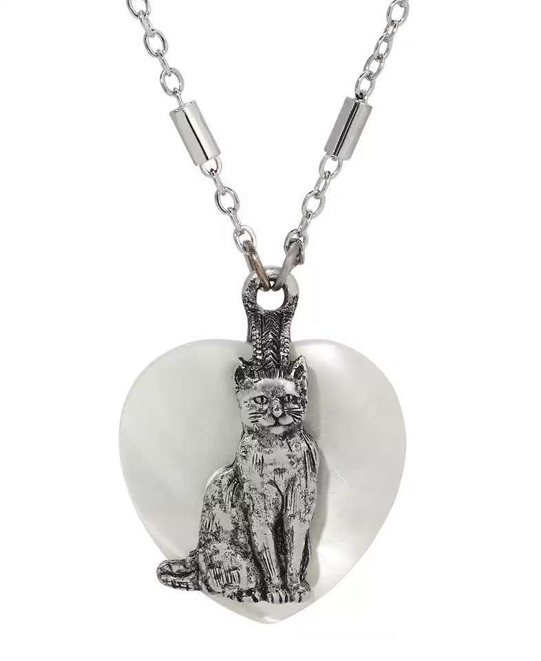 Collana con Ciondolo a Cuore in Madreperla a Forma di Gatto | 2028