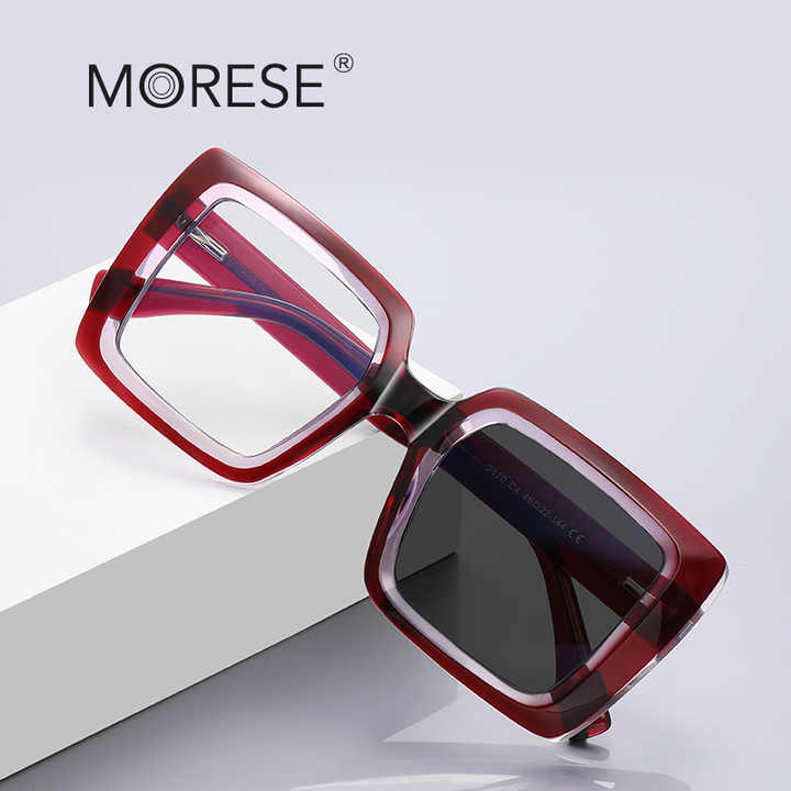 Occhiali da vista MORESE P2170 da donna, rossi, in TR90, con montatura rettangolare grande, anti luce blu e fotocromatici