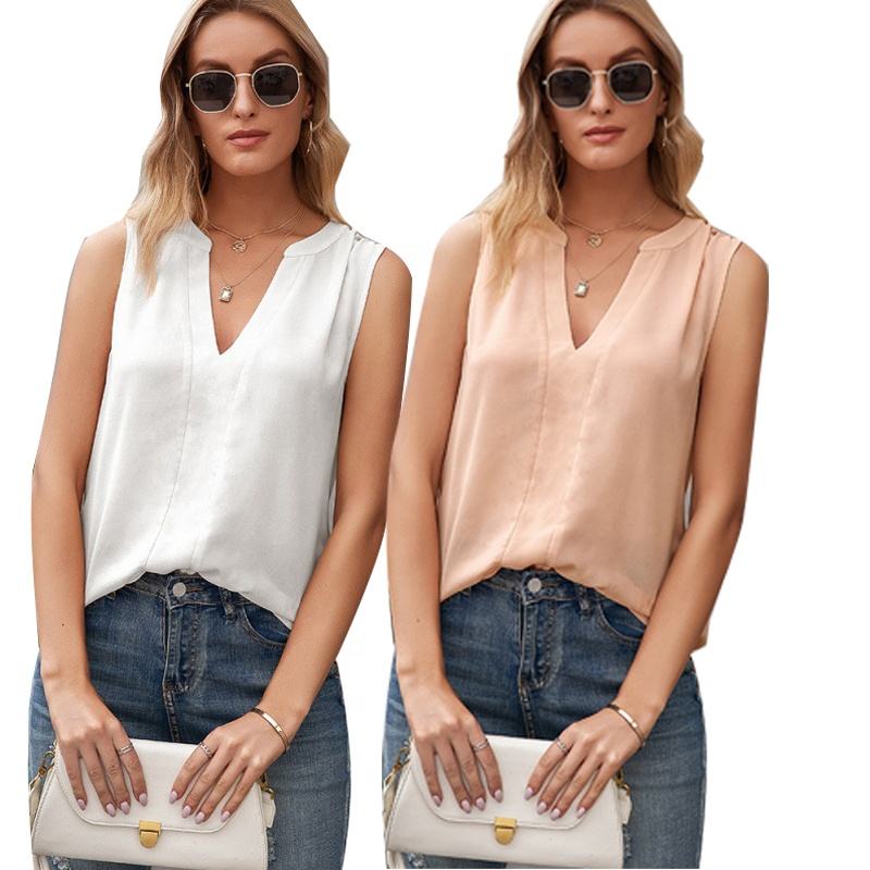MOTE-ZC99 alla moda tinta unita elegante camicia senza maniche gilet da donna scollo a v maturo Sexy bianco signore top camicetta