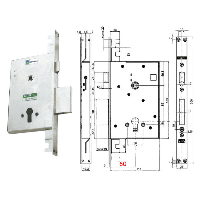 MOTTURA Armored Door Lock for Reversible European Cylinder E60 89.85740