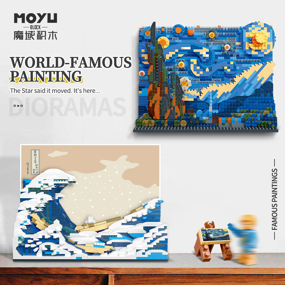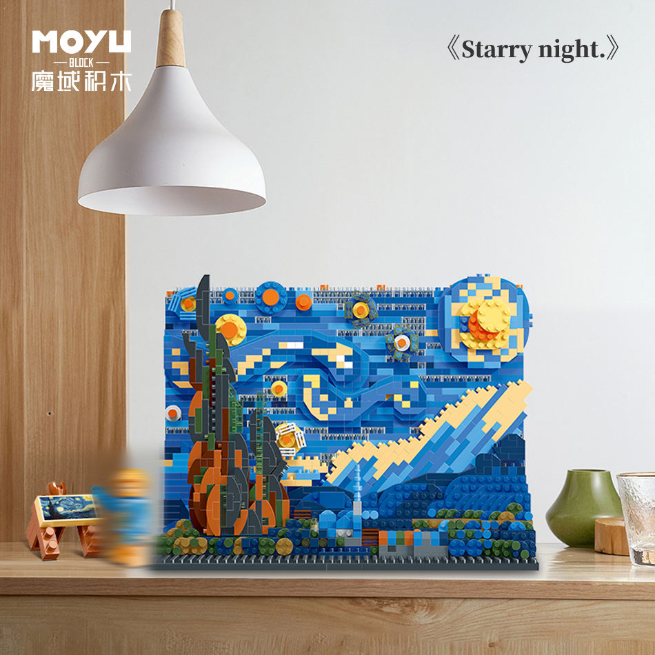 MOYU MOC Art Painting Vincent Van Gogh the Starry Night Model Micro Building Blocks DIY Toys for the Kids Creative Gift