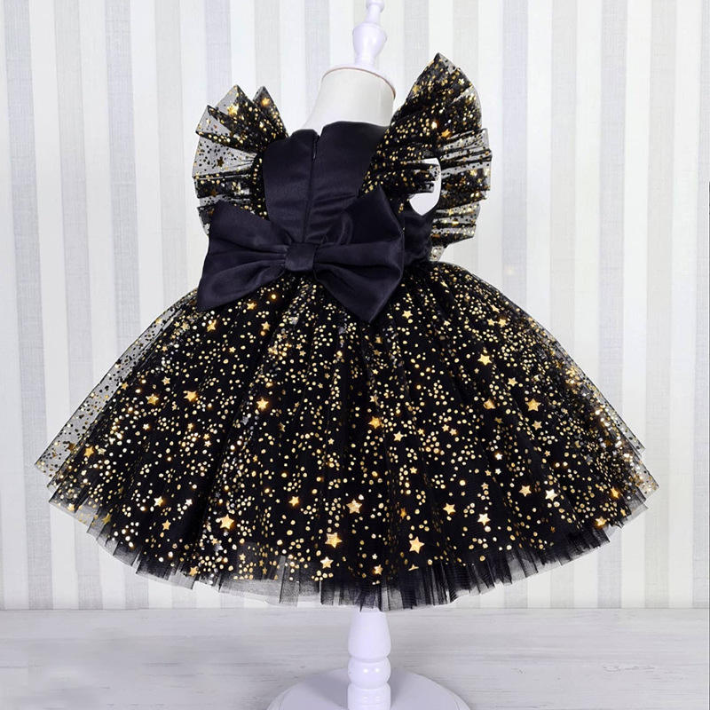 MQATZ Vestito Formale Primaverile per Bambine, Abito da Principessa con Paillettes e Stampe per Compleanno e Matrimonio D1036