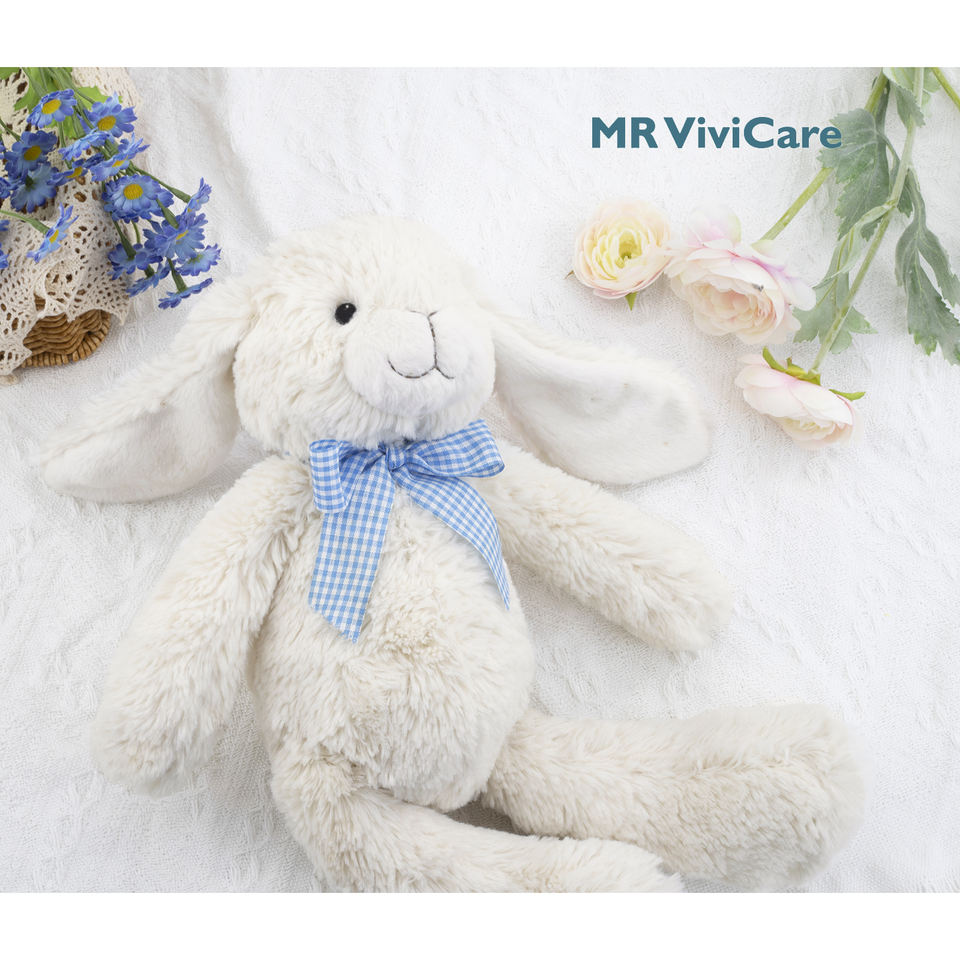 MR ViviCare Toys Plush White Bunny Rabbit with Bowknot Stuffed Animal Soft Cuddly Perfect for Kids