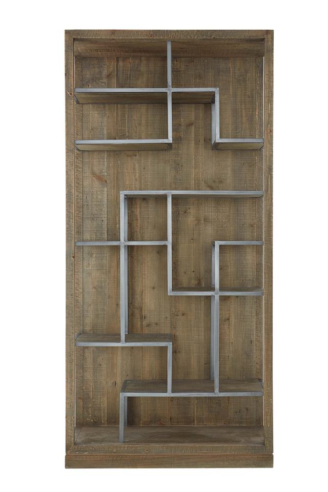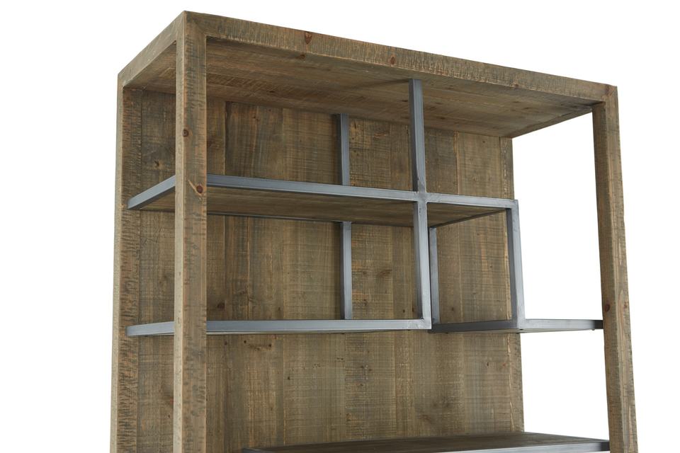 MRS WOODS vendita calda classico industriale rustico Vintage alto argento metallo rigenerato libreria in legno di abete con ripiano in metallo