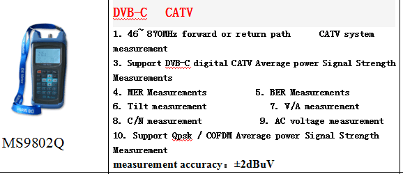 Misuratore di Intensità di Campo per TV Digitale MS9802Q 47~870MHz, Misuratore di Livello del Segnale Digitale QAM CATV in dB con MER e BER