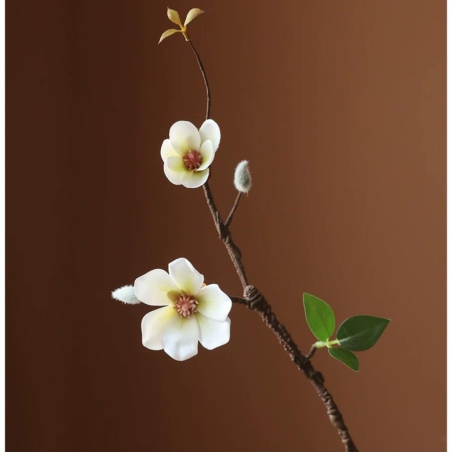 MSH Chinese Style Mini Magnolia Faux Flower with Textured Branches for Office