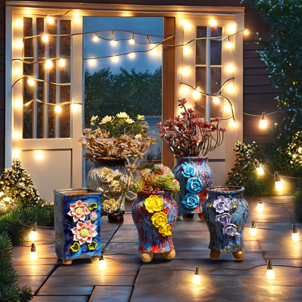 MSH Vaso gigante retrò in ceramica smaltata modello SYP1105 per giardino, balcone e interni — resistente ad acqua, gelo e sbalzi termici