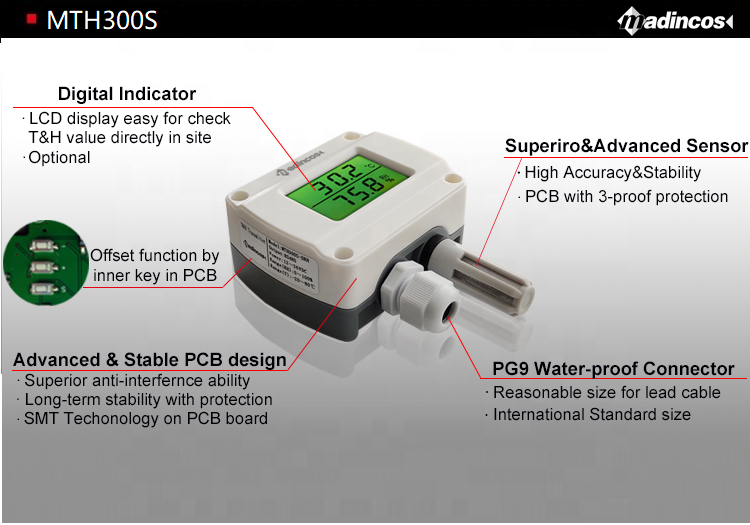 Pc + bolla bage + scatola standard dell'esportazione (MTH300S:0.3% IP65 * Acqua a Prova di Polvere Tipo di Muro 0-10VDC/4-20ma Trasmettitore di Temperatura e Umidità per Alta Misura di Umidità)