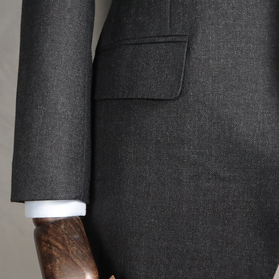 Cucitura artigianale: La cucitura artigianale su tutto l'abito, comprese le asole e i rinforzi, garantisce alta qualità e dettagli precisi.