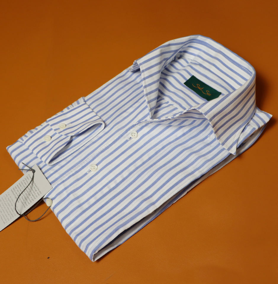 Camicia MTM in Seersucker 100% Cotone a Righe con Colletto, Stile Italiano con Arricciatura su Spalle/Schiena, Camicia Casual per Sartoria