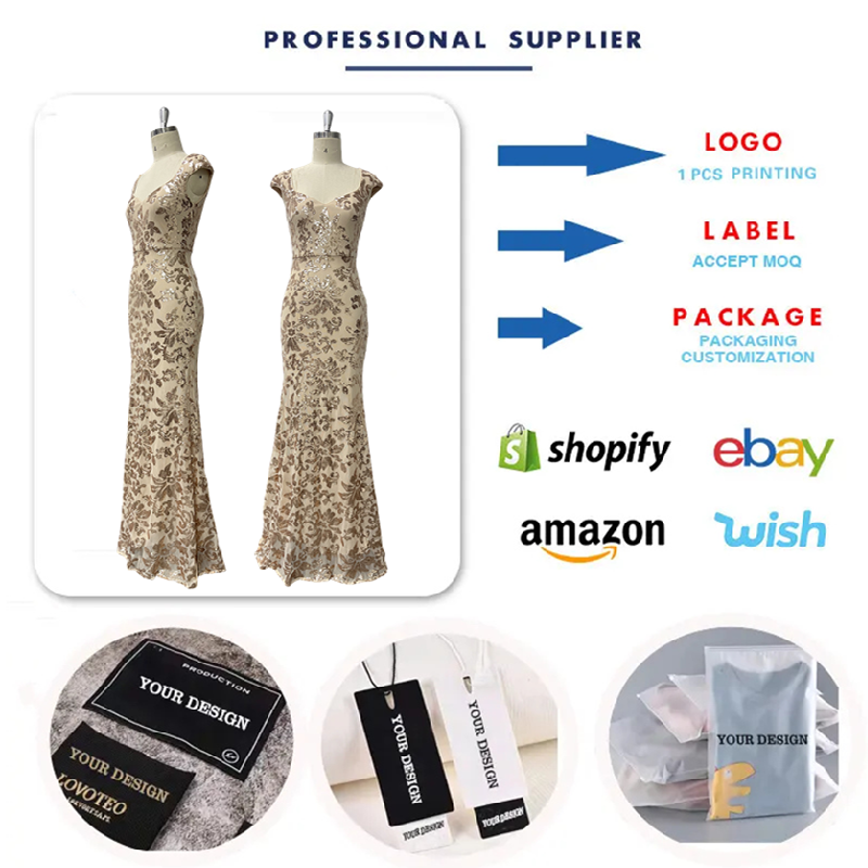 MTW100102 Formal Evening Dresses for Women Square Neck Sequin Gold Rose Pattern Sleeveless Mermaid Party Dress