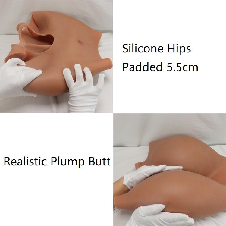 MUSIC POET Plus Size Sexy Women's 100% Silicone Body Shaper Underwear 5.5cm Open Crotch Padded Buttocks Hips Breast Form