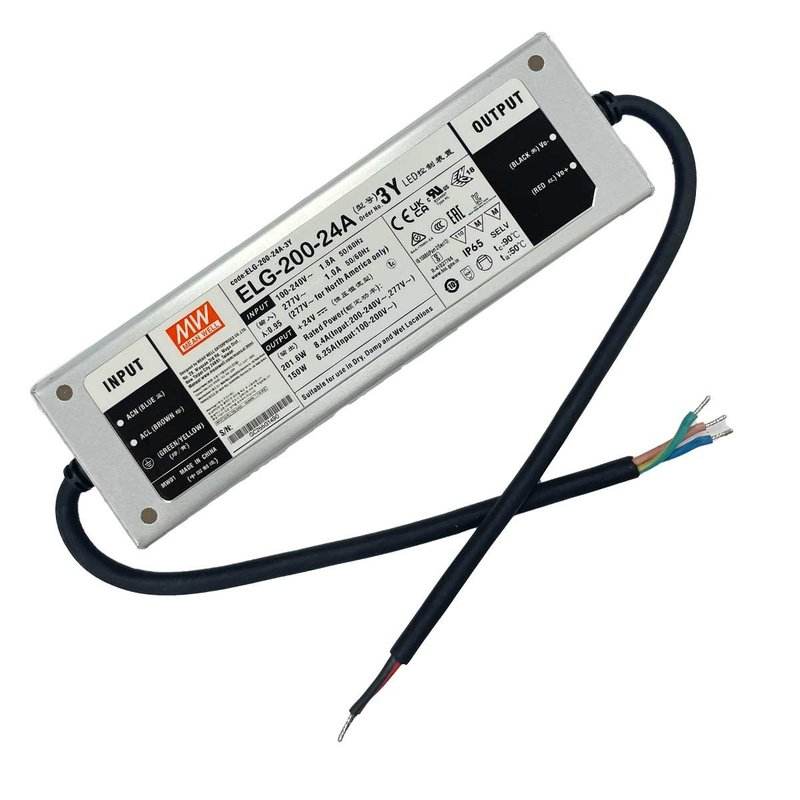 MW MEAN WELL ELG-200-24A-3Y Alimentatore 200W 24V 8.4A IP67 con Ingresso 220V e 110V