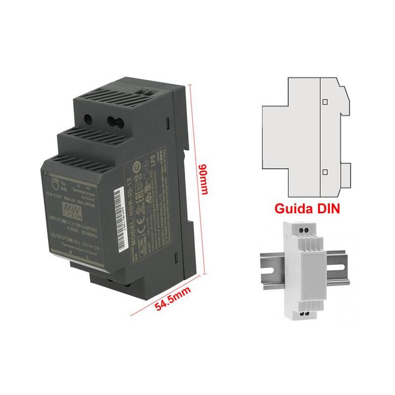 Alimentatore Industriale su Guida DIN MW MEAN WELL HDR-30-12 24W 2A Trasformatore Universale 12V DC