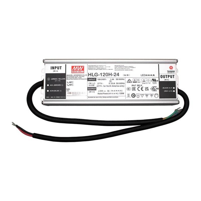 Driver LED MW MEAN WELL HLG-120H-24 120W 24V 5A IP67 Dimmerabile Triac Driver per Faretto in Alluminio Ingresso 220V 110V Uscita CC CV