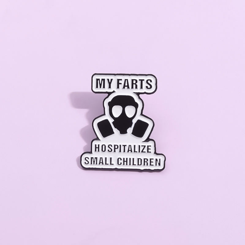 Le mie scoregge ricoverano i bambini piccoli "frase divertente smalto spilla maschera antigas zaino distintivo regalo