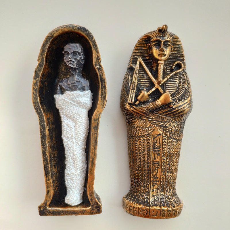 Statuetta in Resina Dipinta a Mano di Mummia e Faraone in Miniatura, Modello di Sarcophago dell'Antico Egitto, Souvenir