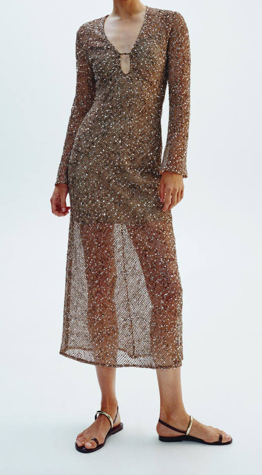 MYST&ZA Women's Clothing 2025 Summer New Fashion Elegant Sequins V-neck Long-sleeved Midi Dress 3618862