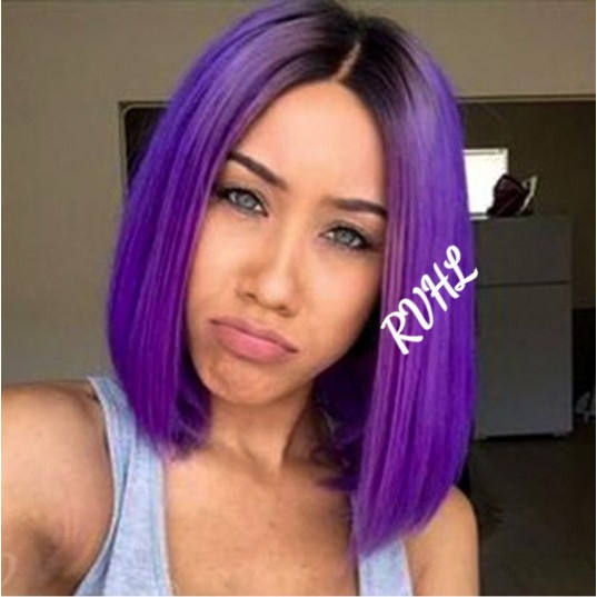 Parrucca sintetica in fibra di media lunghezza con frangia dritta-platino