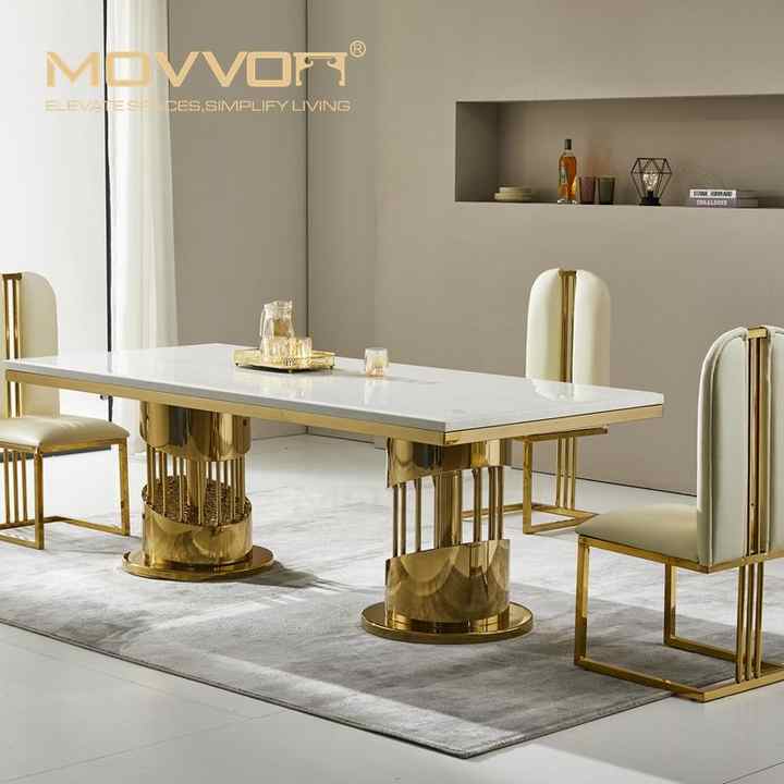 Materiale principale:201 finitura oro in acciaio inossidabile e piano in marmo artificiale