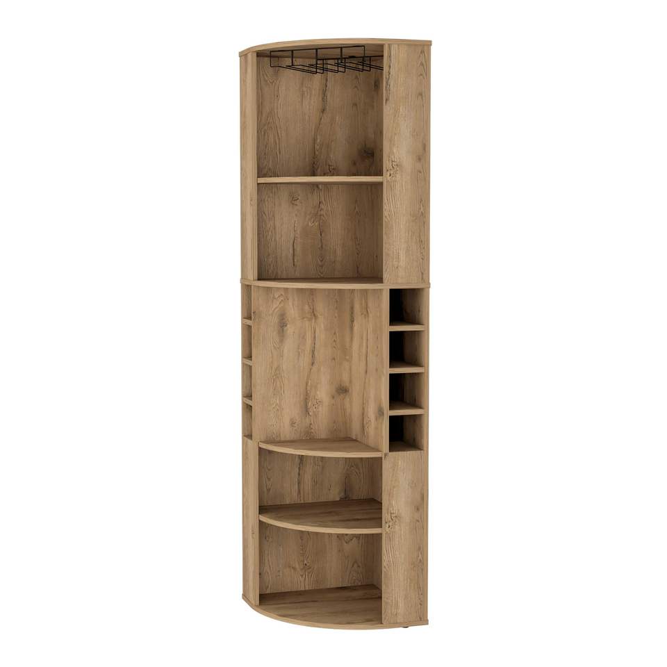 Mobile Bar Angolare Macadamia con 5 Grandi Ripiani, Elegante Arredamento per Soggiorno