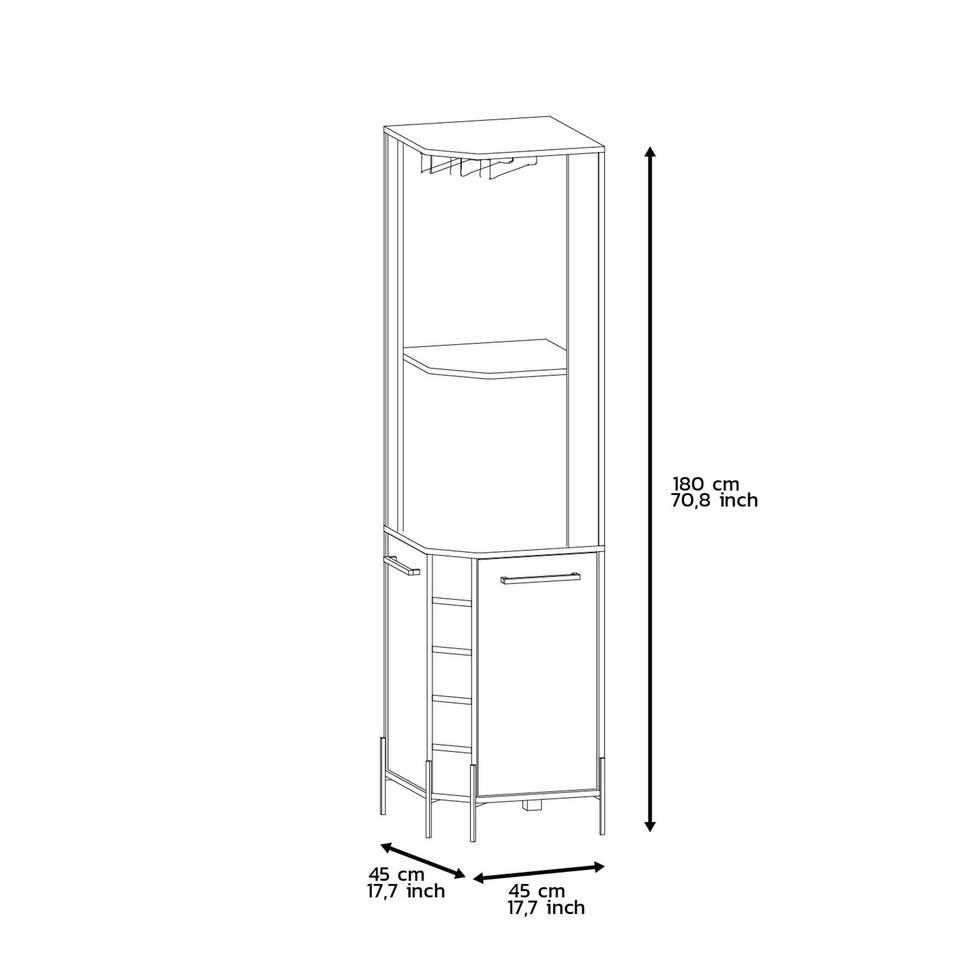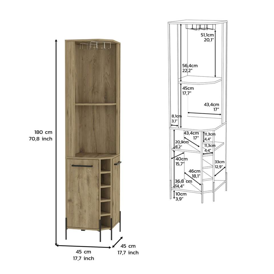 Mobile Bar Angolare a Due Ante in Macadamia con Cinque Portabottiglie Integrati, Quattro Ripiani Interni e Due Unità di Stoccaggio Indipendenti a Singola Anta
