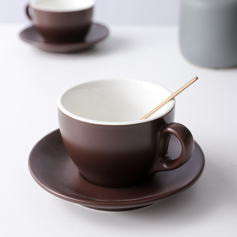 Macaron Wide Mouth Cappuccino Coffee Cup with Saucer European Thick Colored Glaze Ceramic Espresso Coffee Cup Set