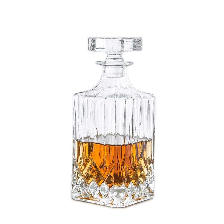 Fatta a macchina 750ml All'ingrosso di Vetro Inciso Quadrato di Cristallo Whisky Decanter Whisky Occhiali Set