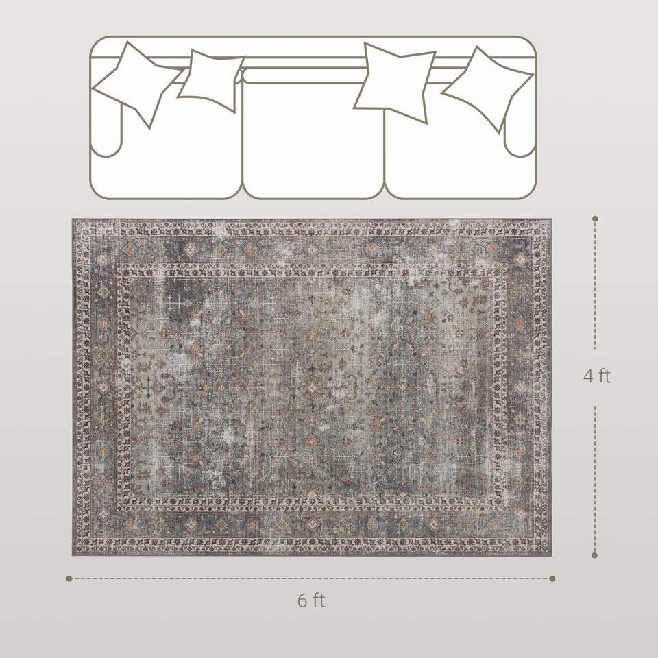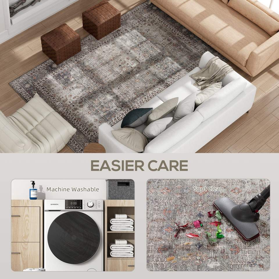 Tappeto Lavabile in Lavatrice 4x6 Tradizionale Antiscivolo Pieghevole Marrone Scuro Misto per Soggiorno