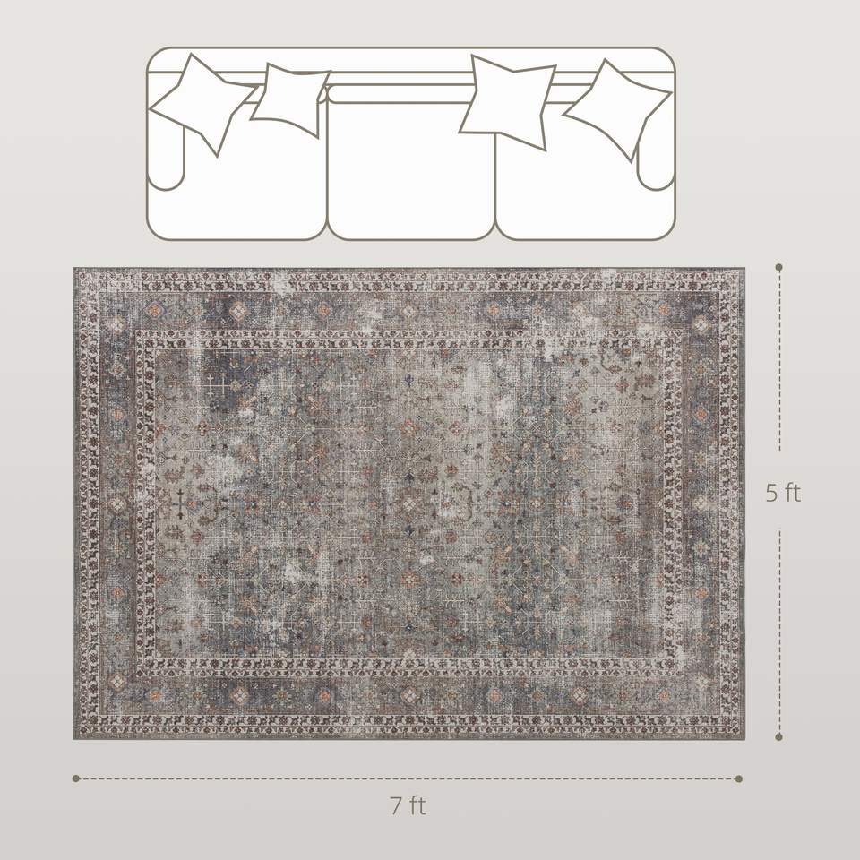 Tappeto Lavabile in Lavatrice 5x7, Antiscivolo, Tradizionale, Pieghevole, Marrone Scuro Misto, per Soggiorno