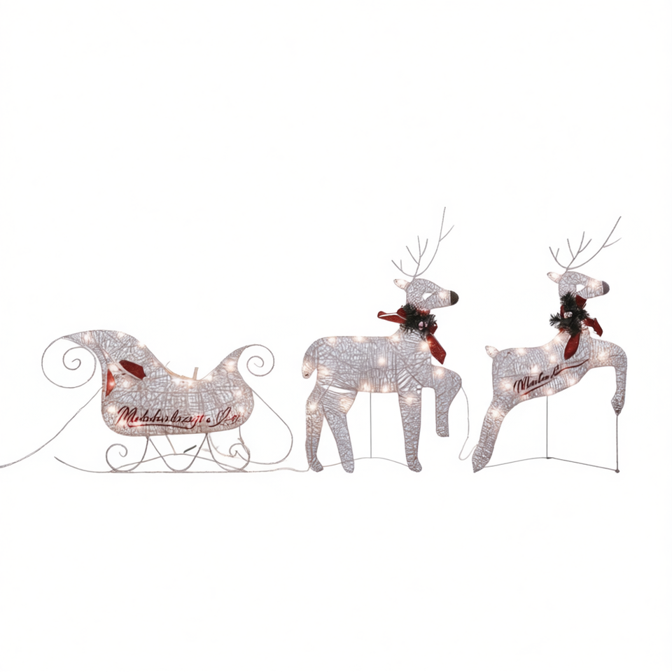 Mackenzie Childs Reindeer And Sleigh Christmas Decoration 60 Leds Indoor Use Traditional Style Gold