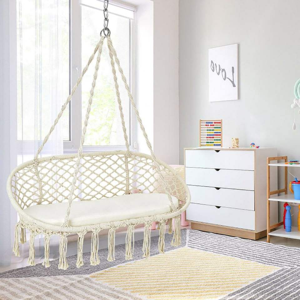 Sedia a dondolo in macramè per 2 persone, amaca sospesa con cuscino con cerniera per soggiorno