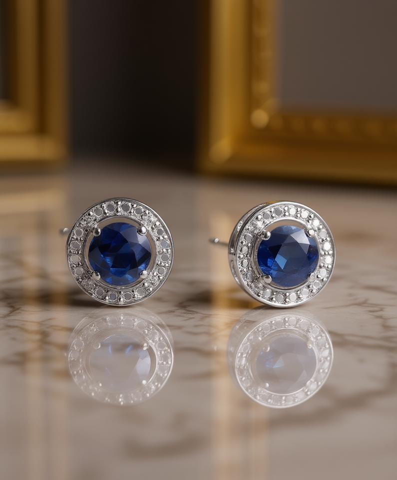 Macy's Sapphire Stud Earrings 5/8 Ct T.W. Diamond Accent Sterling Silver Classic Women's Everyday Wear