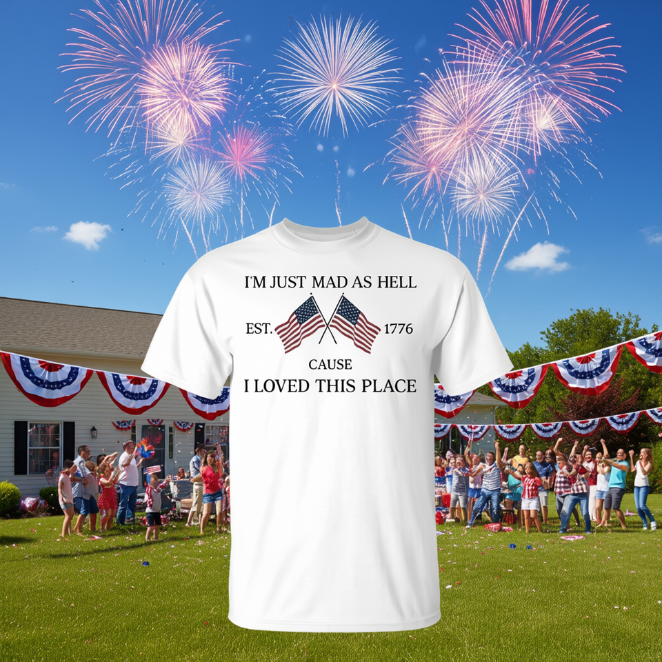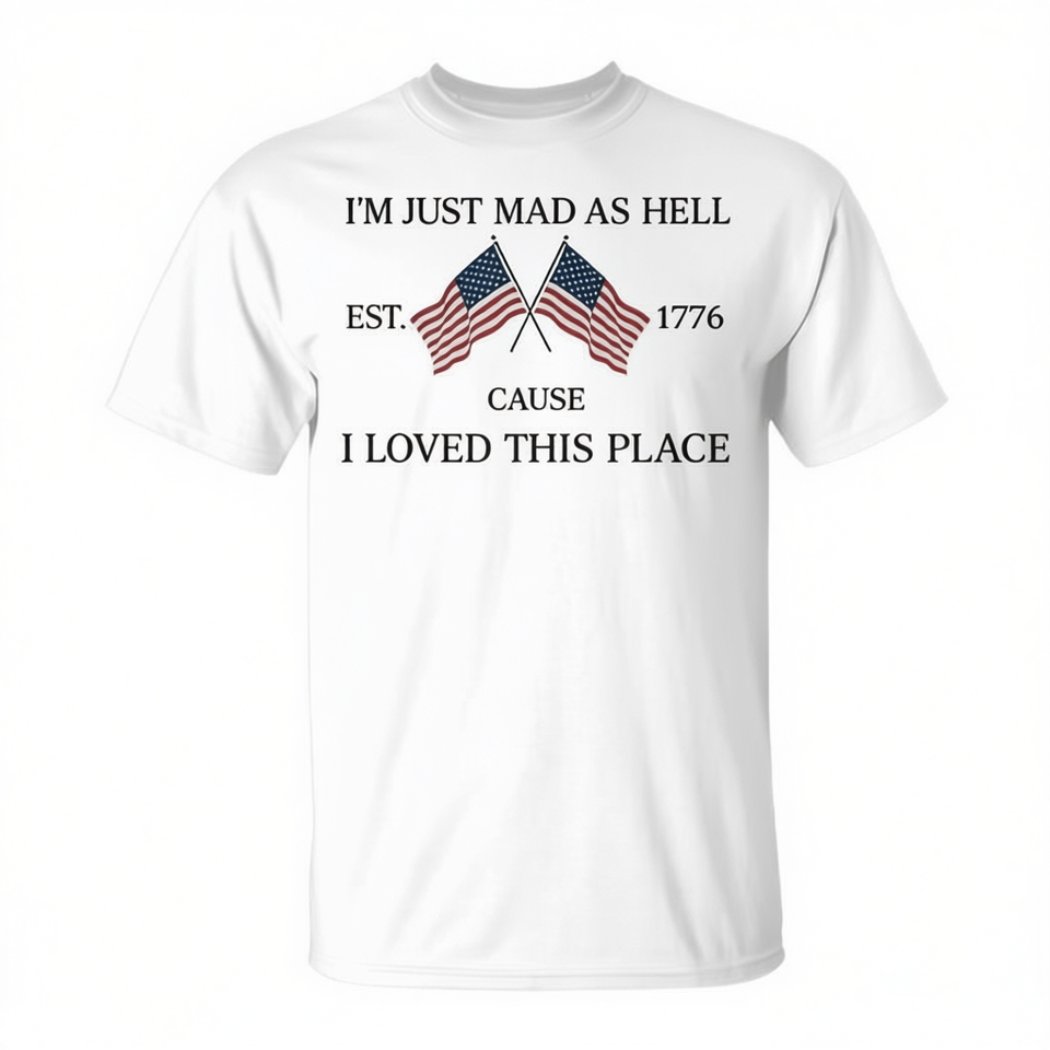 T-shirt del 4 luglio con scritta: Sono arrabbiato per aver amato questo posto