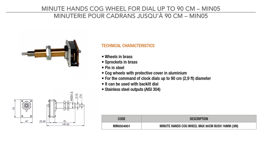 Made in Italy Hands Cog Wheel for Dial up to 90 cm Outdoor Clock Tower Clock