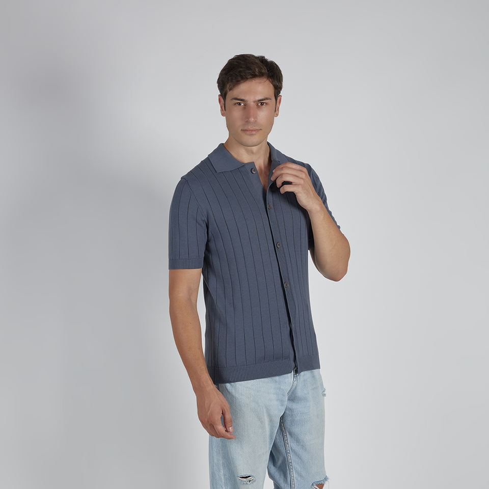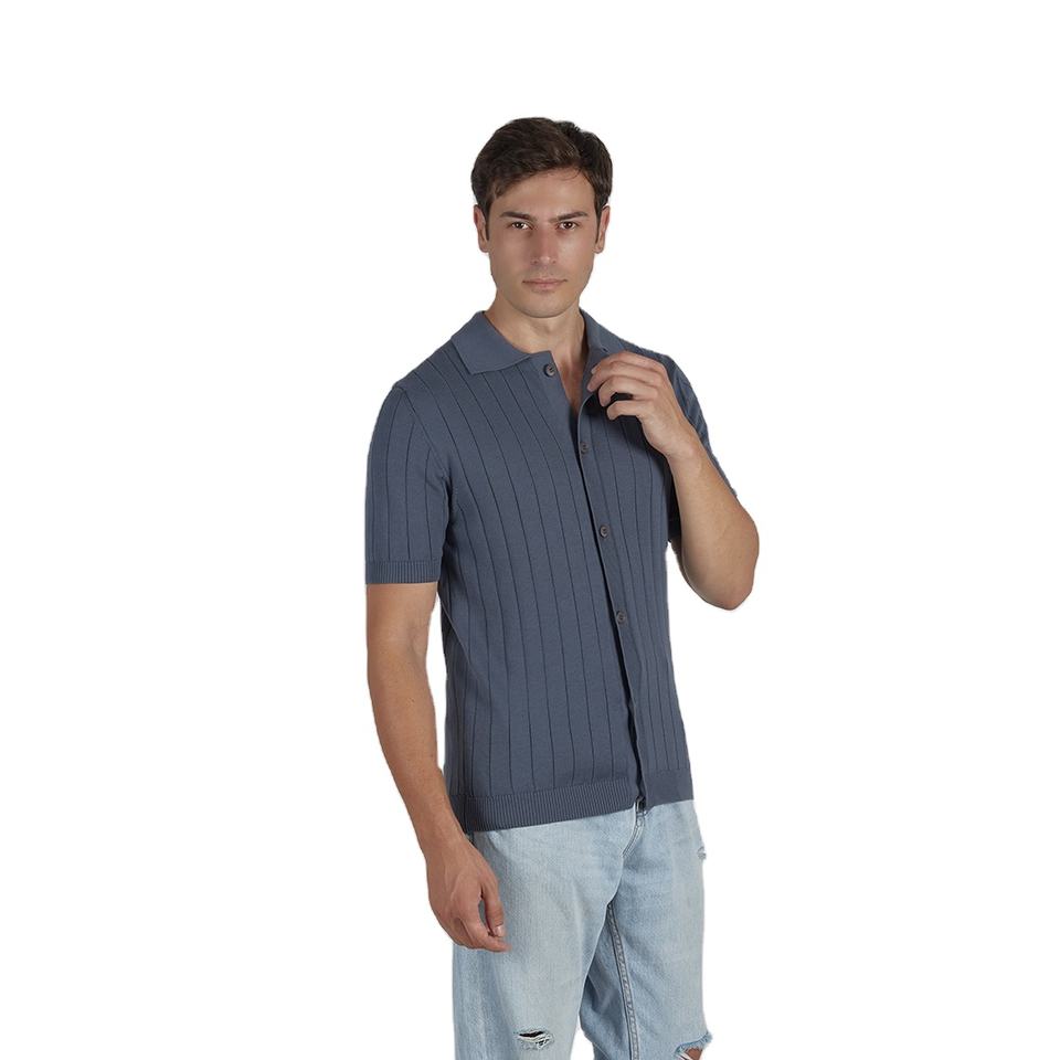 Made in Italy Tshirt Manufacturer Grey Polo v Neck with Short Sleeves Buttons Cachemire Cotton Yarn