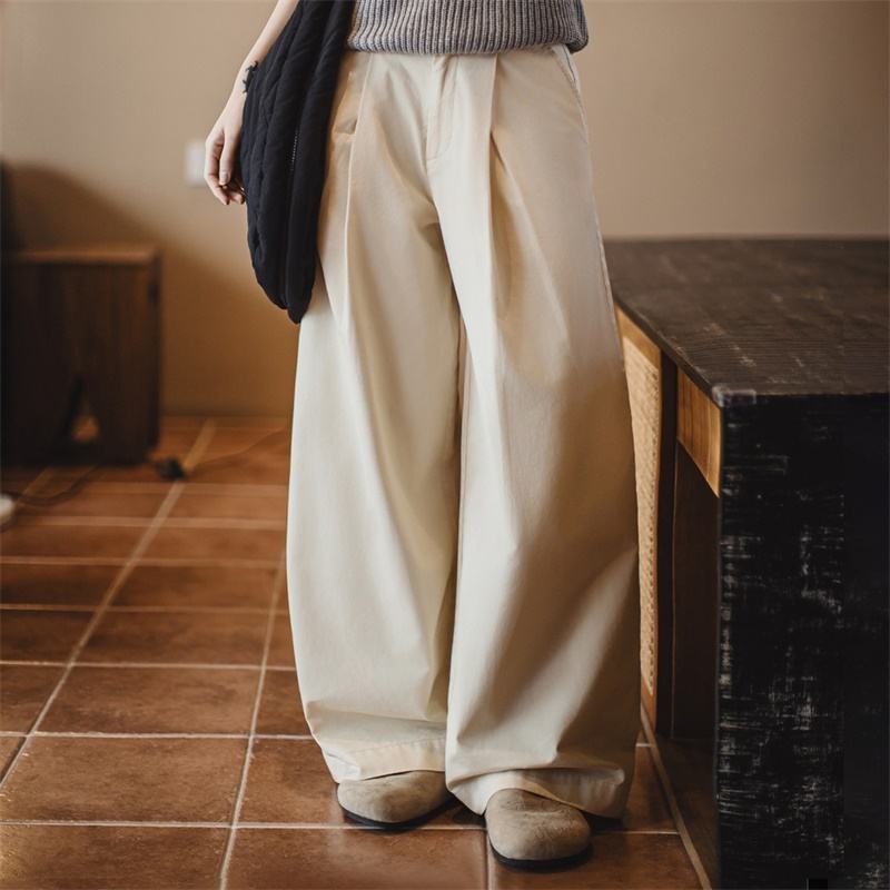 Maden Women's Vintage Pleated Wide Leg Pants White High Waist Trousers with Straight Cut Summer Casual Palazzo Pants RTS
