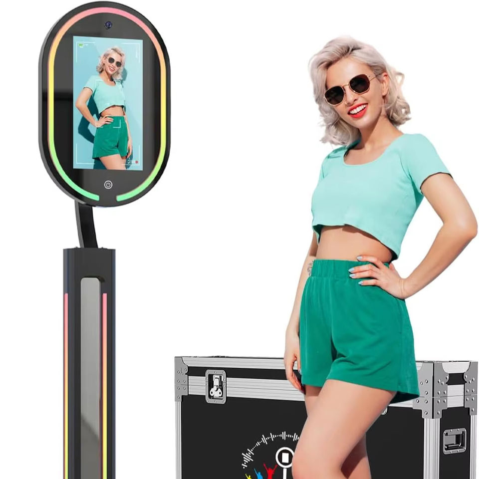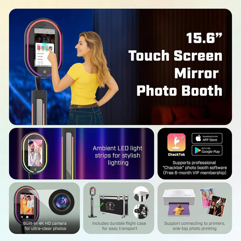 Magic Mirror Photo Booth Touch Screen with 1200W Pixel 4K HD Camera,RGB Surround Light Music Sync,Mirror Video Booth