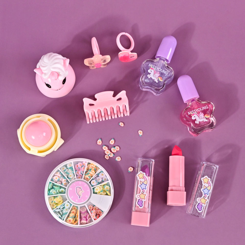 Magical Unicorn Makeup Kit for Girls Washable Glitter Cosmetic Set with Lip Gloss Perfect for Birthday Party