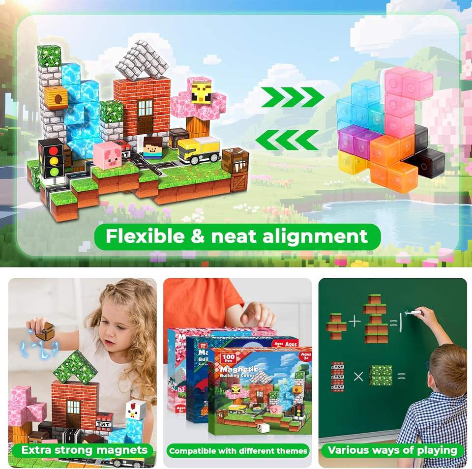 Set di Blocchi Magnetici da Costruzione, Gioco di Cubi Magnetici per Bambini, Ragazzi e Ragazze, Regalo Perfetto per Natale e Compleanno
