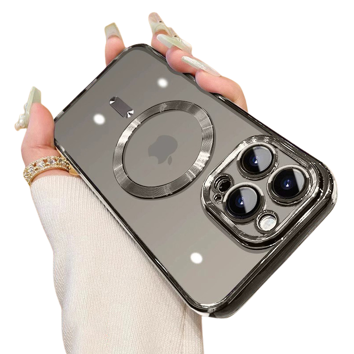 Cover per telefono in TPU morbido trasparente con placcatura magnetica e protezione per fotocamera